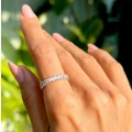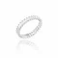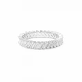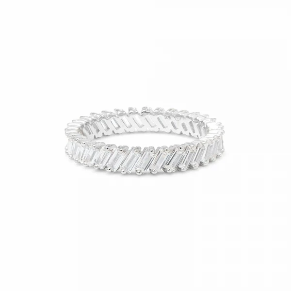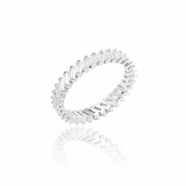 Anel em prata 925 (com banho de ródio) com cristais de zircônias transparentes/brilhantes aplicadas em baguete no formato diagonal.