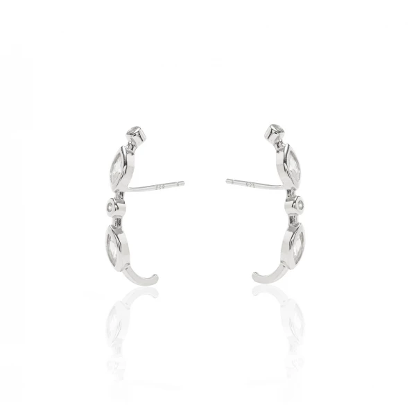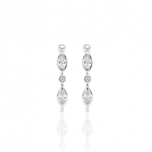 Brincos em prata 925 (com banho de ródio) com zircônias brancas/transparentes em formatos intercalados navete e bolinha.
