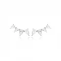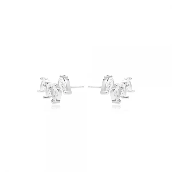 Brincos em prata 925 (com banho de ródio) em modelo "ear cuff" com quatro cristais de zircônias brilhantes brancas/transparentes no formato de gotas.